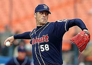 After stints with the Kansas City Royals and Seattle Mariners, Kevin is currently with the Yakult Swallows in Japan.
